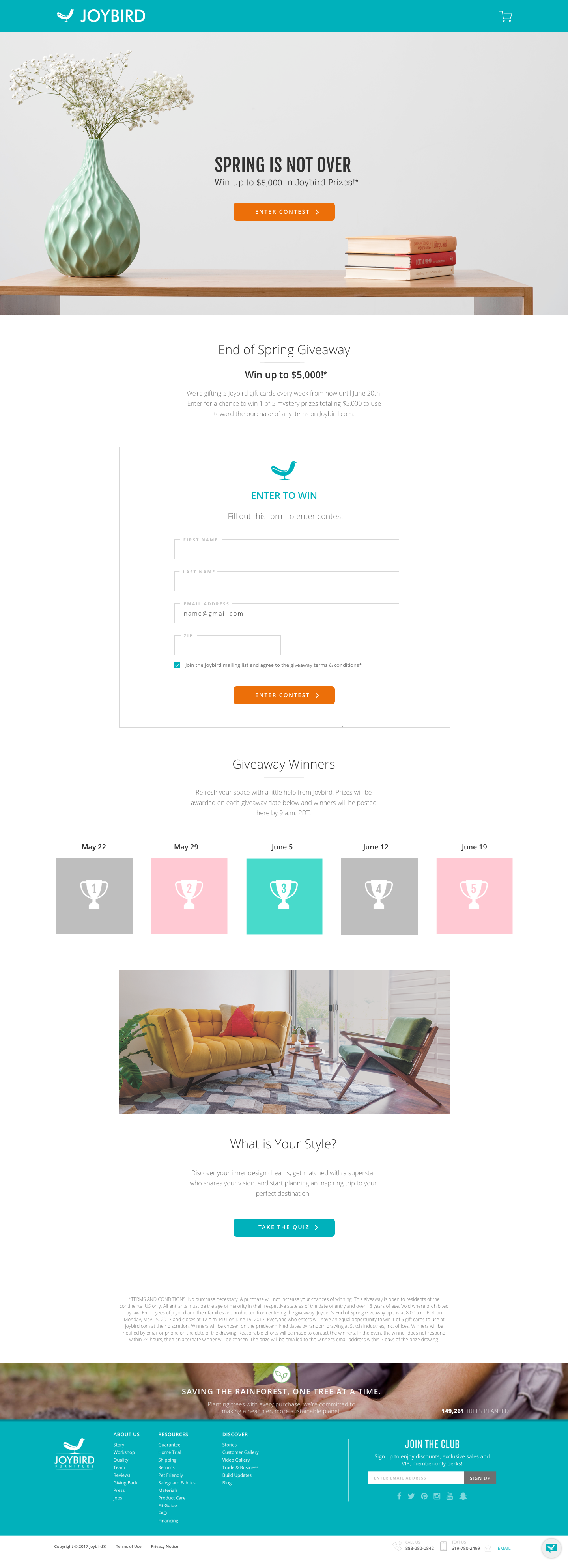 Create a landing page for Joybird Spring 2017 Campaign